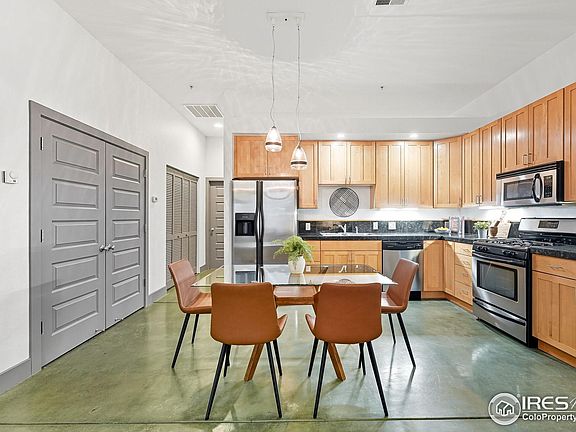 Welcome to your urban retreat at 2018 Ionosphere Street in Longmont's vibrant Prospect neighborhood. This contemporary one-bedroom, one-bathroom condo combines style, comfort, and convenience in a home designed for easy living. With 779 square feet of thoughtfully arranged space, every detail contributes to a smart, functional layout. Step inside and you'll find polished concrete floors that lend a modern, loft-inspired feel to the open-concept living area. The seamless flow connects to a well-appointed kitchen, complete with sleek cabinetry, stainless steel appliances, and a spacious pantry for added storage. Large windows bring in natural light and create an inviting atmosphere, whether you're entertaining guests or relaxing at the end of the day. The bedroom provides a private retreat, while the full bathroom offers modern finishes and plenty of storage. Additional conveniences include in-unit laundry and dedicated parking. Outside your door, Prospect delivers a unique community experience with tree-lined streets, pocket parks, and a variety of shops, cafes, and restaurants just a short stroll away. You'll enjoy low-maintenance condo living paired with access to everything you need-from bike paths and open space to downtown Longmont and easy routes into Boulder or Denver. Whether you're a first-time buyer, downsizing, or seeking an investment property, this condo offers the perfect mix of style, function, and location. Move right in and experience the best of Prospect living.