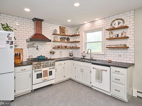 Welcome to 2018 Mill Road, beautifully nestled into Perkasie's picturesque countryside. This adorable Cape has been completely renovated in the past year, blending modern comforts with classic appeal in perfect style. Upon entering the home, you are greeted by wood floors leading to the cozy Living Room. The centerpiece of the room is the beautiful fireplace with french smeared brick. Wait until you see the kitchen- it is an absolute showstopper! Not only does the kitchen have lovely views of the serene backyard, it also features propane cooking, a pot filler, refinished cabinets, and a coffee/ wet bar. The spacious two-car garage includes a handy mud/laundry room, perfect for keeping your home organized, or for additional kitchen storage. Both floors of the home offer two bedrooms and a full bathroom, ensuring ample privacy and ease for family and guests alike. A finished basement allows for even more living space and has been updated with new carpeting and fresh paint. Just a quick walk away is Hilltown Township Park. A 15 minute drive will take you to Doylestown borough, and 10 minutes to downtown Perkasie! Don't miss the opportunity to make this delightful property your own!