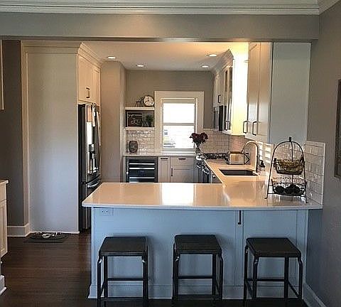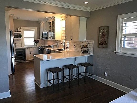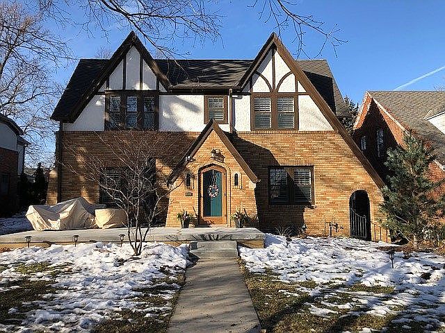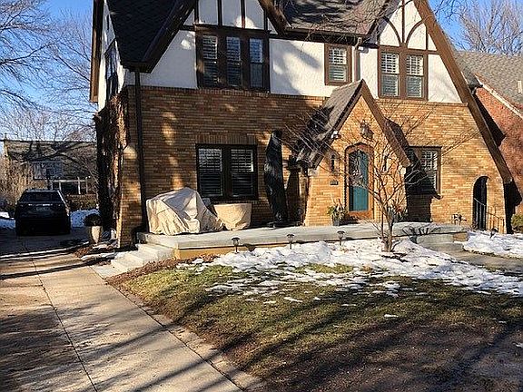 Absolutely charming! Updated Brick Tudor in historic Country Club neighborhood, updated throughout with a gorgeous combination of modern finishes and historic old world charm. Featuring all new designer cabinetry, gas stove, granite surfaces and built in wine fridge, this kitchen is stunning! Main floor also boasts dining area, living room, and half bath with gorgeous wood floors throughout. Cozy living room features a beautiful fireplace. Large bedrooms with plenty of closet space and hardwood floors. All new AC, water heater, light fixtures, garage doors, roof and more. Large open finished basement features additional living space, study nook and gas fireplace. All of this plus a 2 car attached garage with a large driveway, oversized front patio perfect for outdoor living and a lovely backyard. Welcome home!