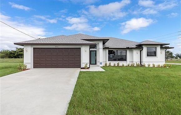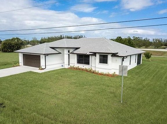 Just finished!!! Brand New Construction Single Family Home with open floor concept in great Cape Coral location. Large great room opens up to screened-in lanai with Pool. This home is equipped with impact windows & doors. Stainless steel appliances, Washer & Dryer & Alarm system.The Kitchen & Bathroom feature wood cabinets with granite countertops & the spacious master bedroom features a tray ceiling. Tile flooring is located through out the home with carpeting in the bedrooms. Home is on a fresh water canal & Close to schools, restaurants & shopping centers. Offering 3% for Realtor who brings buyer.