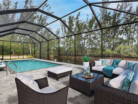 NEW CONSTRUCTION - Single family waterfront home with pool & gulf access! Quality construction with concrete block structure, stucco exterior, and shingle roof. This 4 bedroom, 2.5 bath home with an open concept living floor plan is loaded with upgrades - volume & tray ceilings, tile flooring throughout, recessed lighting, granite countertops, dual entry barrier free shower & claw foot tub in master bath, large closets, and more! The fourth bedroom is located just off of the foyer and is ideal for a home office/den, and another guest room has private entry to a half bath that also is the pool bath. You will love the outdoor living space of the extended screened pool lanai overlooking the canal... Perfect for entertaining and/or watching the gorgeous SWFL sunsets from. Situated in a non-gated, no HOA SW Cape Coral neighborhood and surrounded by all of the conveniences of life- shopping, dining, sports fields, churches, schools, plus just a short drive to the Midpoint Bridge heading into Fort Myers.