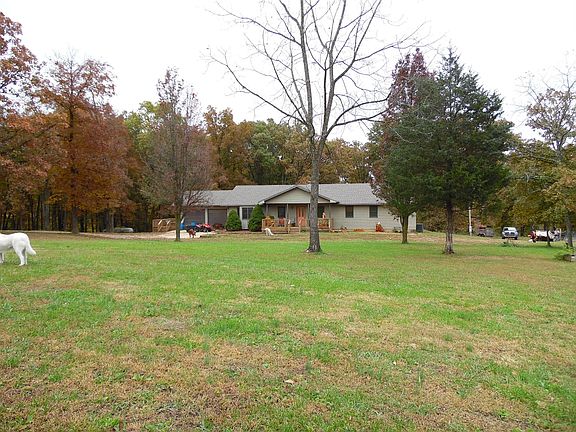 Beautiful Ozarks Custom home on 80 Acres For Sale. This beautiful home has a wood vaulted ceiling in the living room with a floor to ceiling stone fireplace. The open floor plan of the living room, dining area and kitchen feels very spacious. The large kitchen has a bay window with window seat, large island and custom cabinetry with lots of extras. The home has 3 bedrooms on the main level and 2 more rooms in the basement that could be used for bedrooms, if desired. The Master Suite has a bay window, large bath and walk in closet. The finished basement is like another house with its own kitchen and living room, bathroom along with 2 laundry rooms and 6 washer and dryer hook ups. The huge deck over looks the property and wildlife that live here. Home has a 2 car attached garage and shop.