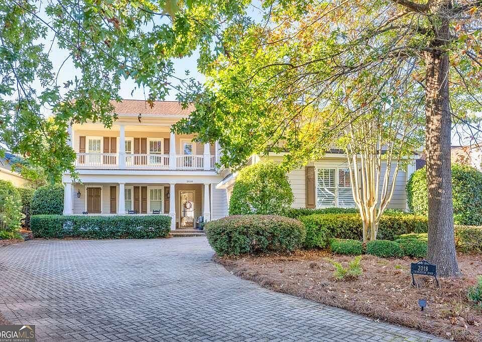 Fantastic opportunity on this sought-after Courtyard home overlooking the golf course on 8 Silver in THE GEORGIA CLUB! This elegantly decorated 4 bed, 4.5 bath home has just over 4000 sq. ft of interior space and tons of outdoor living space. The black iron gate welcomes you to the main house & detached guest suite and opens to a spectacular fenced courtyard oasis with a serene waterfall, spacious covered seating area & additional lounging space to grill for entertaining and enjoying with family and friends. The front door of the home opens to a stunning formal living and dining rooms with trey ceiling and a retractable, sliding glass door that disappears into the wall that truly connects this space with the courtyard, blurring the lines between the indoors & outdoors. 10 ft ceilings and Brazilian cherry floors on main. Multiple entrances to home off the courtyard, lots of natural light and beautiful views! Newly upgraded gourmet kitchen with new huge center island with gorgeous, leathered granite countertops, tons of cabinet space, breakfast room, walk in pantry, newer stainless steel gas range with built-in griddle and dishwasher, gorgeous backsplash, double ovens, and microwave. Built-in garbage bins, pull-out spice rack, pull out wooden drawers inside soft close cabinets! The kitchen seamlessly flows into the open family room and the truly impressive floor-to-ceiling stack stone fireplace with beautifully backlit, built-in bookcases with built-in surround sound speakers & systems. Above the fireplace is space for a flat-screen television. Family room opens up to a covered back porch with a new retractable screen overlooking golf course. A private office with French doors is located in a hallway leading to the elegant owner's suite, located on the backside of the home with French doors that open up to the courtyard. Luxurious master bath has comfort height vanities, granite countertops, oversized shower, a jetted soaking tub, separate water closet, & a linen closet. Spacious walk-in closet with built-in closet system. On the other side of the courtyard is an inviting detached private guest suite with fabulous views of the private courtyard. With a dedicated entrance, this space is a wonderful spot for hosting guests or the perfect spot for a home office. The guest suite opens directly to the courtyard. An additional third bedroom & bath, a powder room, & a spacious laundry room are also located on the main level. A stately wooden staircase welcomes you to a fourth spacious bedroom, full bath, large closet, & generously sized and open versatile entertainment space with access to both the front & back upper covered porches with a birds-eye view of the courtyard and front of home and park. A welcoming paver driveway leads to the spacious 2.5 car garage comfortably holding two cars & a golf cart. An attached storage shed is located on the back of the home. Irrigation system, Plantation Shutters throughout home. Located on the club side of The Georgia Club, an easy walk from the clubhouse, driving range, fitness center & aquatic complex. The Georgia Club is a gated community & private club with 27 holes championship golf, aquatic & fitness center, restaurant open 6 days/week, lighted tennis courts and more! Upgrades: Exterior of home painted in 2023, 2 new hot water heaters, new HVAC servicing the upstairs, newer (7 yrs) architectural shingle roof, newly upgraded kitchen and master bath, new interior and exterior ceiling fans and lights, new dishwasher and gas range, new retractable screen on back porch, new fireplace gas logs.