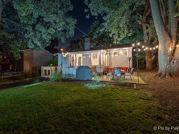 Beautifully remodeled 3-bedroom ranch with a partially finished basement! The open-concept main living area is filled with natural light, showcasing soaring ceilings with striking wood beams and upscale modern lighting. The spacious kitchen is a showstopper with quartz countertops, stainless steel appliances, sleek oversized cabinetry, a large island with breakfast bar, and recessed lighting. Newer high-end wood laminate flooring flows throughout the main level, with plush carpet in the bedrooms for added comfort. The updated bathroom and convenient main-level laundry add style and function. Enjoy the cozy shiplap sunroom featuring a gas fireplace, expansive windows, and modern lighting-offering direct access to the private backyard surrounded by mature shade trees and new concrete patio. All this just minutes from Pistakee and Fox Lakes, perfect for boating, fishing, and outdoor recreation!