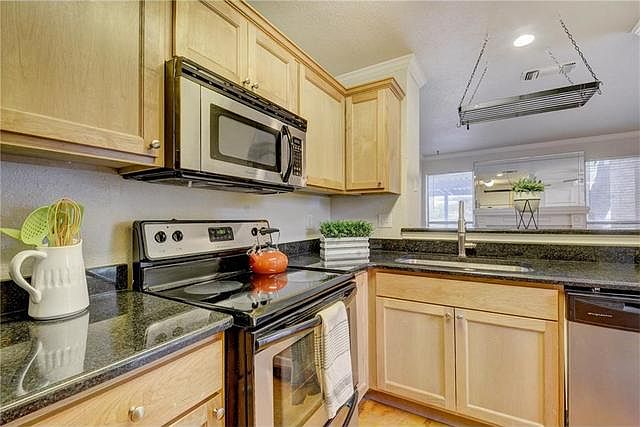 78758 is the place to be. Close to the Domain shopping, 4 local beer breweries, Top Golf, plus easy access to Hwy 183, Mopac, & I-35. Near community swimming pool & 1 reserved carport parking. No popcorn ceilings. Stained concrete on first floor w/built-in bookshelf, wood fireplace, living/dining/bar & 1/2 bath, plus renovated kitchen w/granite countertops, stainless steel appliances & spacious cabinets. Second floor includes both bedrooms w/Sept. 2017 installed carpet & full bath. Covered side patio.