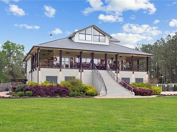 Welcome to Bienvenue Mon Ami, nestled within 30 acres of serene woodland, this breathtaking estate offers a harmonious blend of natural beauty and refined luxury. Dual gated, controlled entries to a 3700 ft drive invite you into a secluded world of opulence and comfort. As you meander over rolling hills on winding paths, the lush forest envelops you. Become enchanted by the tranquil allure of long-view fairways, captivating sculpture gardens and fountained/stocked pond. Be impressed by extensive outdoor accent lighting. At the heart of these captivating grounds, stands a meticulously crafted Mansion designed to operate seamlessly as an oft awarded Bed and Breakfast and Gallery. From lighting to picture rails, details accentuate an art gallery immersive experience. Ascend a grand staircase or glide effortlessly via a 3-stop elevator to discover spacious communal areas adorned with elegant dining spaces, a soaring 25 ft ceiling framing panoramic views and a fully equipped guest kitchen that includes a Miele built-in fresh grind coffee machine. Each of the three luxurious guest suites boasts a large private balcony, a comfortable sitting area and a soothing bathroom with wet room, towel warmer and heated bidet. Play in an expansive game room. Conveniences abound (e.g., fiber internet, ethernet wired, 9x17 safe room, security, fire suppression, lightning rods). The ground floor unveils quarters for an isolatable, extravagant owner retreat alongside a cozy, private guest suite. With Croci Hurricane shutters seamlessly enclosing expansive porches and a pergola shaded hot tub area, the Mansion living space effortlessly expands while inviting you to savor every moment in this extraordinary sanctuary. Additional structures enhance the estate's allure with a 2400 ft2 insulated garage/workshop, 483 ft2 fire pit gazebo and over 2700 ft2 of concrete floored outdoor entertainment areas. Many adorning movables can be available for purchase. Own your dream estate located 10 minutes from Covery Rise Farm, 50 minutes from NO International Airport, 35-40 minutes from Covington, and 15-20 minutes from Folsom.