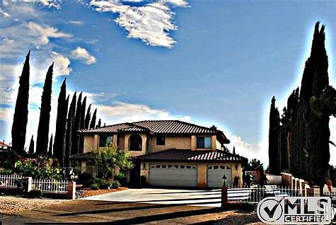 Stunning Apple Valley POOL home with VIEWS that will take your breath away! This is a special property with panoramic views of the Victor Valley and mountains. This property has it all...front and rear landscaing with river rock, multiple trees and flowers, large lot (over half an acre), pool & spa for these hot desert days, covered patio with built in BBQ, tile roof, 3 car garage and that's just the exterior. The interior features large living and family room, formal dining area, wet bar with mirrored backspalsh and granite countertop, granite countertops in all bathrooms with upgraded showers, large bedrooms, huge deck off master suite with more great views, and seperate laundry room. The kitchen features stainless steel appliances, large stainless steel hood and more granite countertops. From the kitchen window you have a view of the large backyard, pool, and views of the valley. Standard seller.