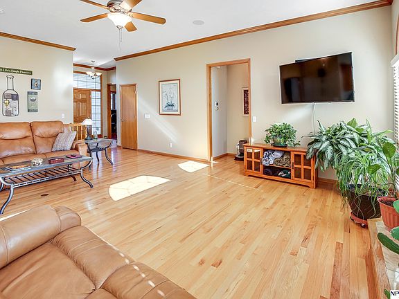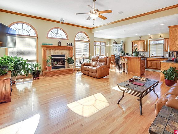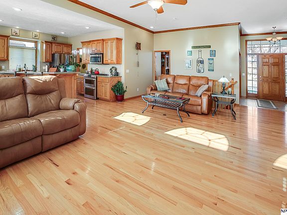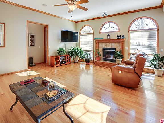 Beautiful Ranch home w/modern concept. Large, open family rm w/fp & floor to ceiling windows. Gorgeous solid oak floors & fresh paint adom the main floor. Bright eat in kitchen w/huge center island, tons of cabinets, pantry, Corian counters, SS appliances, gas stove & double oven. Rare formal dining rm. Mst BR w/walk in closet, updated bathrm w/double sinks, whirlpool tub & stand up shower. Sizeable secondary bedrooms share a full bath. Main floor laundry rm. Enormous finished walkout basement includes: newer carpet/paint, family rm w/gas fp, game rm w/home bar, POOL table, large 4th br w/daylight windows, 3/4 bath, bonus room for exercise, tons of storage. Amazing backyard oasis! Large professionally covered patio w/new (2023) HOT TUB, mounted tv/sound bar, fire pit. Expansive composite deck built in 2019, overlooks immaculately maintained & perfectly landscaped yard. New roof, gutters, ext paint in 2017. Elkhorn South schools. Ideal Location. Ask about the Entertainment Package!
