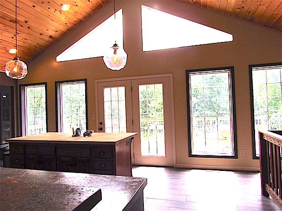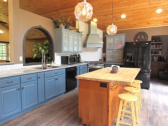 Very private 5 bedroom, 3 bath ranch on 22 acres on Northshore. Flooded with natural light this 3300 sq. ft. home is spacious inside and out, feels open and airy with vaulted ceilings. The main level master en suite bathroom has heated floors and a claw foot tub in a cozy alcove. Newly remodeled kitchen, newer flooring and lots of charm. Lower walkout level is complete with a family room and woodburning FP, three additional bedrooms and full bath. One bedroom does not have a window. Outside is a circle drive and lots of parking, a 30x50 metal studded building with the interior finished with drywall, insulation and 1/2 bath. 22 acres of beautiful MO hardwoods, yard around the house is fenced, close to restaurants and a Dollar General.