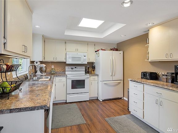 Incredible, cul-de-sac,corner lot - updated rambler w/laminate floors thru out most of home, new kitchen counters & Cabs w/deco tile backsplash & appliances all stay incl. W/D and wine fridge.Low maintenance backyard w/firepit w/westerly exposure. Master bath & Guest bath have had full remodel,new tile floors,counters, backsplash the works! Skylights & ceiling fans in select locations complete this. So close to Boeing, Park & Ride, Shopping & parks you will love your new life in this home.