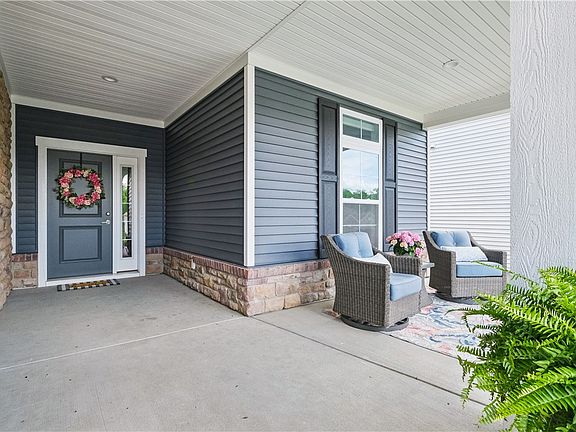 Immaculate 2.5-Year-Old Home with Exceptional Upgrades~ Welcome to this nearly-new home that blends style & functionality in one perfect package! From the moment you step onto the charming covered front porch, you’ll feel right at home. Inside, the total open-concept layout creates a seamless flow, highlighted by gorgeous ceramic wood-look flooring and custom lighting. The heart of the home is the spacious white kitchen featuring stainless steel appliances, a gas cooktop, & an expansive island perfect for entertaining. A designated office space with French doors offers a quiet retreat for remote work.The Master suite boasts a bonus sitting room & a luxurious en-suite bathroom w/ a tiled walk-in shower, double bowl vanity, & direct access to the laundry room. The 2nd bedroom is generously sized w/ ample closet space, while the second full bath includes another beautiful tiled shower.Enjoy outdoor living w/ a rear patio ideal for relaxing. A two-car attached garage completes the package.