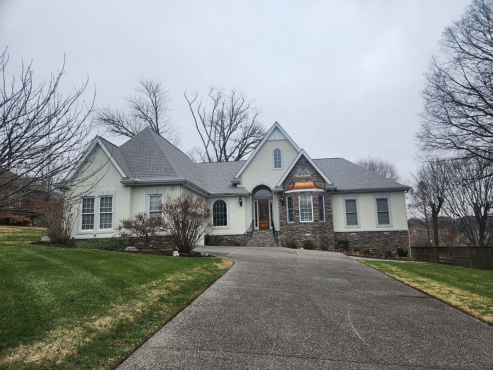 Stunning residence where 14-foot ceilings, expansive windows & an open-concept design create natural light and a welcoming atmosphere. The kitchen features custom cabinetry, a double oven, pull out drawers and an Island ideal for both everyday living and entertaining. Trey ceilings, custom built-ins, and three distinct living areas designed for flexibility. A dedicated home office with double glass doors provides a refined space for work or study. The upstairs BR can be a bonus room --complete with a full bath—could also serve perfectly as guest retreat, or private quarters. Unwind on the covered back porch overlooking a beautiful backyard, perfect for outdoor relaxation. Spacious two-car garage, Irrigation and