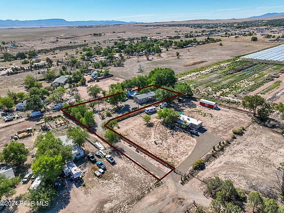 Beautiful Secluded Acre. 5 minutes from down town Chino Valley. Fully Fenced. 2018 3 Bed 2 Bath with 2 Car oversized garage. Den / Study could be 4th Bedroom just add a door. Fantastic Home for entertaining or raising a family. Loads of off street parking. Area for RV with its own electric meter. New 2020 Well pump with piping. Garage has Storage and Workshop. Open Deck area with Firepit. Property is tucked away in back corner for loads of privacy. Shade trees surround the back yard. House supported by concrete slab so no ground to earth contact. House has Concrete Fiber Siding not Vinyl, Laundry Room. Asphalt street to gravel private driveway. Yard art, souvenirs, Porta Potty and Kids Playhouse do not convey.