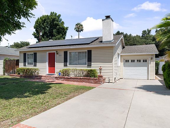 Located on a peaceful street in Duarte, resides a very charming home with 3 bedrooms and 1 bathroom. This picturesque property has a beautiful exterior, along with solar panels that are on lease and a roomy 1-car garage. The living room features a corner fireplace. The updated modern kitchen is equipped with granite countertops, a decorative mosaic backsplash, as well as built-in stainless steel appliances that includes a double oven and a range hood. There is a breakfast bar and a cozy dining area. Adjacent from the kitchen is a family room that has a beamed ceiling and double French doors that lead you outside to the backyard. Bedrooms are bright and spacious, offering ample closet space. The primary room has its own private bathroom. The home also includes a convenient laundry area. The back yard is perfect for relaxing or for entertaining. There is lots of privacy, a nice lawn, plus an enclosed patio where you can add seating. This property is the perfect buy! Perfect for a new home buyer!