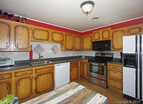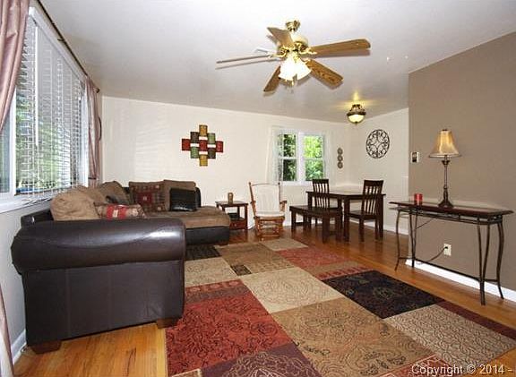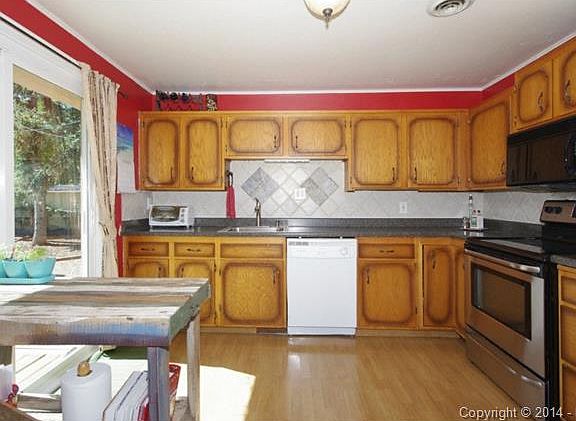Pride of ownership is what you'll find here! 5 bedrooms(5th is currently used as the play room) beautiful wood flooring, lots of great sunlight, mature neighborhood & trees! Excellent square footage up & down! Ceiling fans for year round comfort & wood stove in the basement.Decoratively xeriscaped yards w/grassy area in the backyard for play! Kitchen is spacious & walks out to the deck.Basement laundry room is plenty large w/utility sink.Enjoy the covered rear deck to relax on a Colorado evening! Shopping/dining is close!