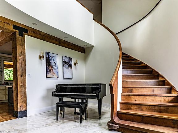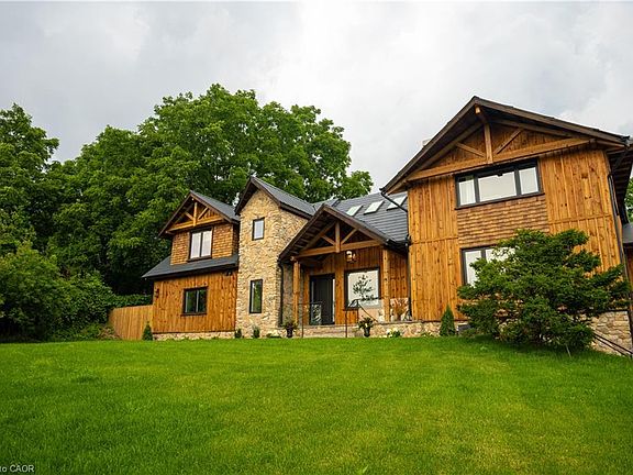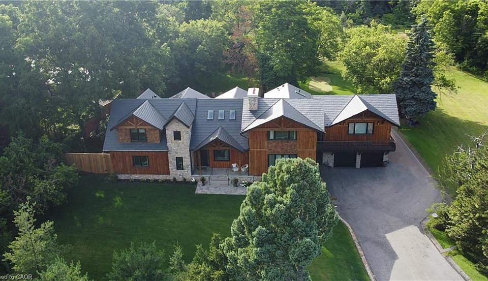 Welcome to 2019 Dundas Street, a truly extraordinary estate, just shy of an acre, in north Burlington. A rare fusion of luxury, business potential and breathtaking views, this sprawling chalet style home offers an unparalleled lifestyle. Perched along the Niagara Escarpment, the property boasts stunning panoramic views of the GTA skyline and Lake Ontario, creating a serene cottage-like retreat overlooking the city. Designed for prestigious living and professional success, this home is zoned for home-based businesses, making it an ideal choice for doctors, dentists, lawyers, engineers, and other professionals seeking to live, work and entertain. With custom craftsmanship throughout, the layout consists of 4 large bedrooms, 6-bathrooms and a dog shower, featuring vaulted ceilings, rustic post and beam construction, wood burning fireplace and an elevator for accessibility. The authentic exterior of natural fieldstone with pine board & batten is complemented by large triple pane windows and a custom metal roof. From hosting elegant gatherings to enjoying quiet family moments, the home’s entertainment spaces are second to none. A resort-style wading pool, cascading waterfall, firepit, swing, conversation pod, putting green, expansive covered deck with wet bar and city view balcony provide endless opportunities to enjoy the breathtaking surroundings. High-end appliances and a wine cooler cater to your culinary needs, while the 4-car garage and 25+ vehicle driveway ensure ample parking space for guests and clients alike. Beyond the home’s elegance, its prime location offers quick access to top-rated schools, hospitals, shopping, highways and the scenic Bruce Trail. Whether you're seeking privacy, luxury, or a thriving business location, this estate delivers unmatched amenities. Opportunities like this are rare—schedule your private showing today and discover your dream lifestyle.