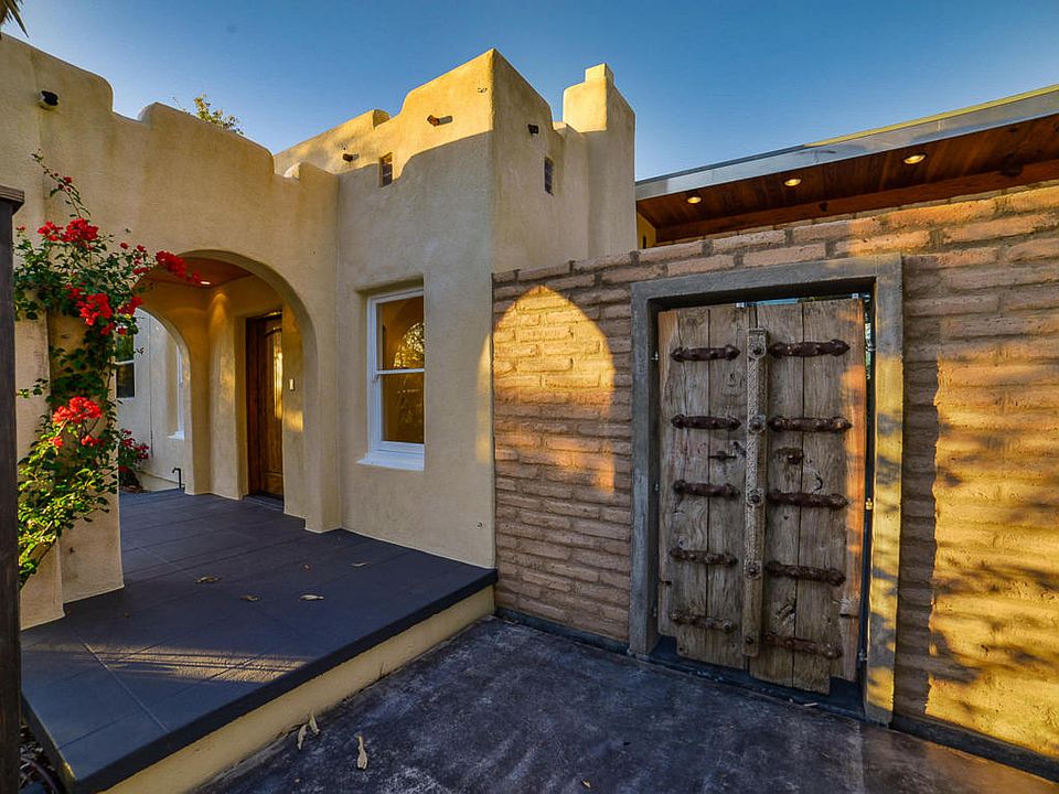 Ultra-contemporary Sam Hughes Bungalow. The original structure built in 1927 offers a wood burning fireplace, coved corner ceilings, custom hand bent rounded baseboards, an original full bath and all electrical wiring was updated in 2004 throughout the home. An addition in 2013 increased the living area which includes 24 inch Brazilian Slate floors, 4x10 ft. sliding doors a sleeping loft, a 3/4 bath, private 10x10ft patio with 19th century carved gates from Western India. The kitchen has butcher block counters, Manganese Saltillo floors, downdraft Jennaire stove, water filtration system, Bosch DW, Rock Hardwood Maple cabinets. Artists custom glass shelving with suspension system, clerestory and arched windows. All of the electrical and plumbing were updated on 2004.