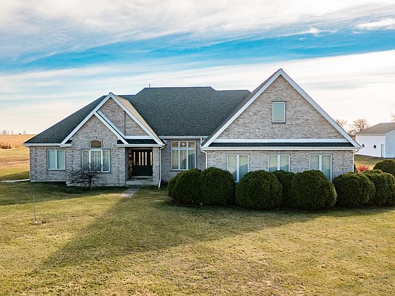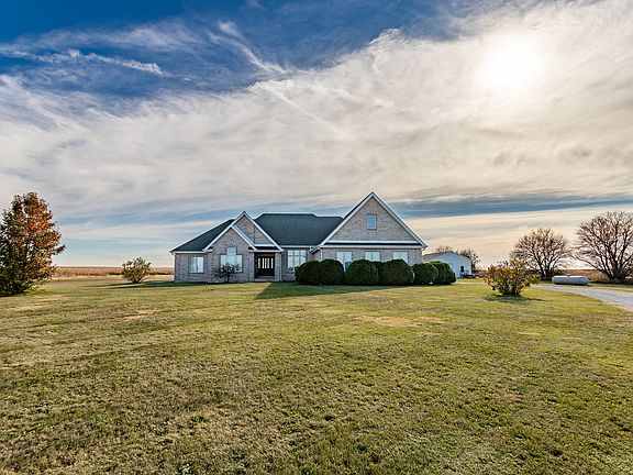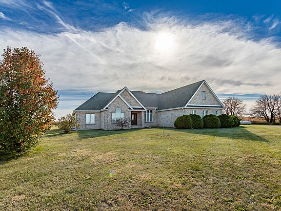 This is a great opportunity you don't want to miss!! Beautiful custom-built all-brick ranch with over 3100 square feet on the main level and a full basement on 10 acres of property!! Minimum 9 foot ceilings and some cathedral ceilings throughout, even the basement has 9 foot ceilings! 3 generous-sized bedrooms all with walk-in closets. The main bedroom is huge with a big ensuite bathroom that has 2 separate vanities, a whirlpool tub and shower with a seat. The basement is mainly unfinished, except has a finished 3/4 bath and few studded walls! The possibilities in this huge basement are endless! The kitchen includes lots of hickory cabinets, an island, built-in appliances and a huge space for a table next to the double french glass doors leading to the backyard. Gorgeous views of the sprawling property!! A 3-car garage is attached to the house and there is also an outbuilding on the property with a cement floor and garage doors on both the front and back, for a riding mower, workshop, or whatever else you need! You definitely need to see this property in person to see how beautiful and peaceful it is!! Schedule your showing today!!