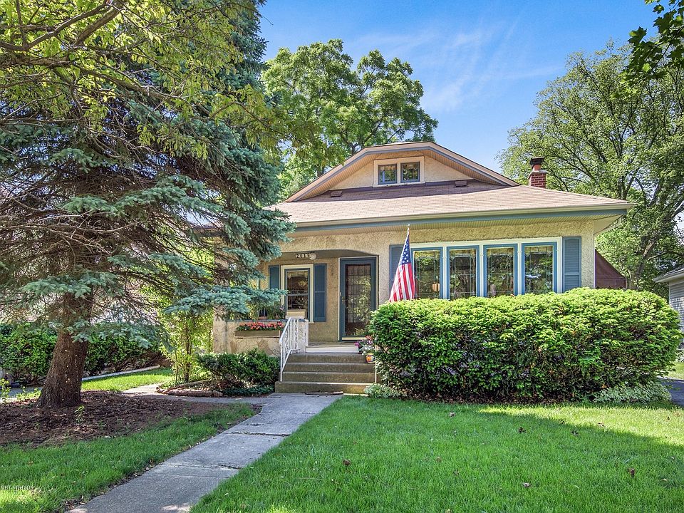 IMAGINE spending lazy afternoons reading your favorite book, or relaxing evenings visiting with friends on the front covered porch of this charming 1920's bungalow in the heart of Glenview! WARM oak hardwood floors and original oak trim finishes welcome you home. EXQUISITE interior features include stained glass windows, some original door knobs, arched doorways, wood burning fireplace with ornate mantel and tile surround. Tastefully REMODELED kitchen features plenty of table, storage & work space, farm style sink & upgraded appliances. Three delightful bedrooms on the first floor and the second floor, currently used as a den, could be converted into a Master en-suite to escape at the end of a long day. FENCED yard, detached three car garage, Newer Roof, Newer AC and only three blocks (literally seconds) to town, parks, pool, schools, train, restaurants and shops! Isn't this the home and lifestyle you've been searching for?