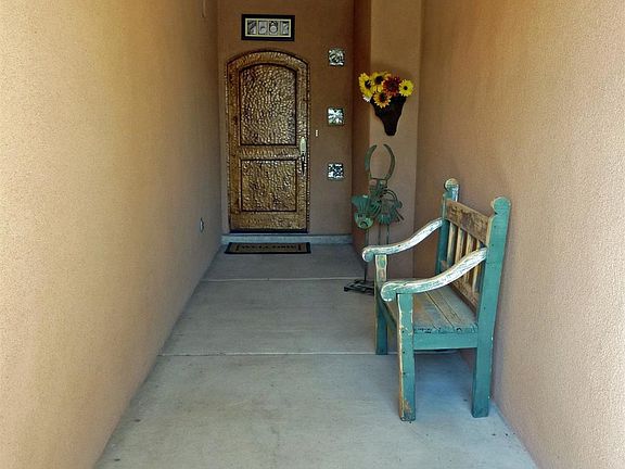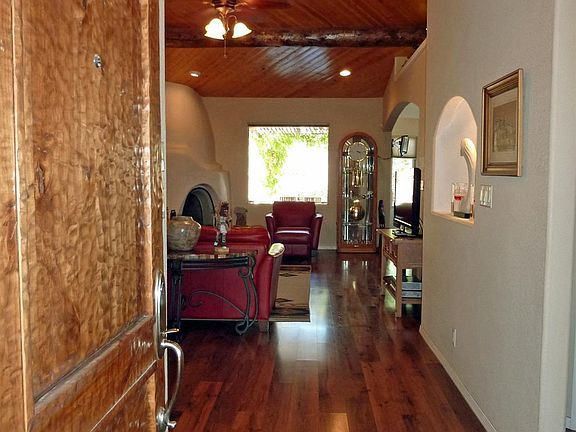 Absolutely Gorgeous custom home by Kabrico. The Great Room has a custom sculpted kiva fireplace, T&G ceiling with vigas, ledges, nichos, arches & laminate flooring. The kitchen has beautiful maple cabinetry, granite countertops, stainless appliances, walk-in pantry & is open to the great room and dining area. Master suite is separate from the guest bedrooms with walk-in closet, cultured corian double vanity, garden tub & large double head tile shower. Dont miss the super back yard w/ Portico.