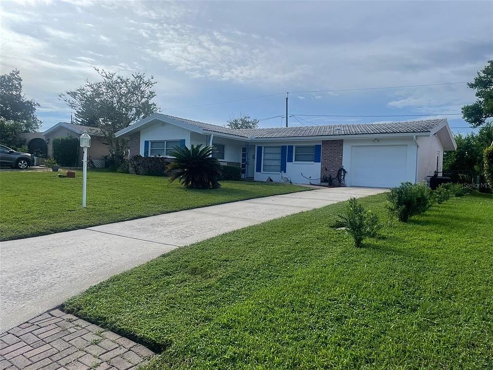 Welcome Home to this cute 2 Bedroom, 2 Bath home. Enter the front door and your very spacious kitchen is on the right with tons of cabinets and countertops for the Chef in the family. You have a huge living room overlooking a large patio. Down the hallway you have the master bedroom with your own en-suite and walk-in closet. The 2nd bedroom is very spacious also with a large closet. There is ample storage. 2nd Bathroom in hallway is large. Access the garage off the kitchen. Fenced in backyard. There is an Optional HOA for access to the Community Pool and Clubhouse with fitness center. Located in a Non flood and non-Evac Zone. You are just minutes from Clearwater Beach or popular Downtown Dunedin. Tile roof is 20 Years old so plenty of life left there.