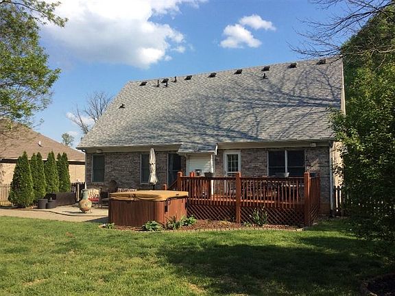 Beautiful 1.5 story brick home located in wonderful Prestwick Estates Subdivision. Home features a two story foyer and great room. Kitchen includes granite counter tops and stainless appliances. Hardwood floors throughout most of the first floor. !st floor master has tray ceiling and crown moulding with a whirlpool tub and separate shower and a walk in closet. 2nd floor has 3 nice bedrooms and one full bath with shower tub combo. Finished basement includes theater room, gaming room, 3 sided gas fireplace, wet bar with counter tops and cabinets, extra bedroom/office or exercise room, full bath with shower and new carpet in 2014. Plantation blinds throughout the home. Curtains remain with home. Completely fenced back yard borders trees and farmland. Beautiful landscaping surrounds a large deck and huge patio area with a hot tub. New water heater in 2014. Don't miss the opportunity to live in beautiful Oldham Co. Agent owned property