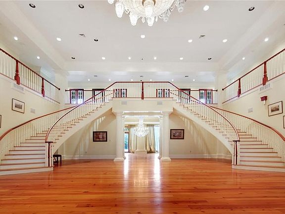 Exquisite estate property in a southern plantation setting, Maison Bonne Vive, designed after "Oak Alley Plantation Home", is a blend of old world elegance and modern amenities situated on 4+/- acres of one of the most desirable parcels of real estate in Alexandria, Louisiana. Upon passing through the estates massive private gates, one enters into a world of stately oak trees with Italian water fountain. Maison Bonne Vive, designed by Simone Guillory Architects consists of a magnificent main residence and separate entertainment building. The main residence offers approximately 20,000 sq.ft. that is exquisitely designed and impeccably built. This home offers the utmost in elegant and comfortable living. Old world charm sets the stage, paired with modern amenities galore. 5 bedrooms, 6 full bathrooms, 3 guest bathrooms, 2 offices, on two levels plus a custom elevator to the rooftop "widows peak". 150 yr old Chandeliers wired for sound, brick pavers in the gourmet chef's kitchen and sitting room, state of the art lighting, sound and surveillance systems, a custom wine bar, and a high powered generator that powers the entire property, along with a 4 car covered parking carport. The entertaining house adds an additional 3,000 sq.ft. that includes a large entertaining area, a full kitchen, full bath, and 6 restrooms, outdoor kitchen and fireplace. The refined interior can only be matched by the outstanding exterior. Listing Specs: Utilities average $1,200 per month 20,000 sq.ft. home 3,000 sq.ft. entertainment house Simone Guillory Architects 5 Bedroom 6 Full Baths & 3 Half Baths 2 Offices Roof Deck 4 Car Carport Safe Room: 1foot thick walls 100KW Natural Gas Generator Spray Foam Insulation 50 Ton Chiller 1,000,000 BTU Chiller Elevator / Dumbwaiter Slate Roof, 75 year warranty Antique Brick 4 fireplaces Grand Double Stair Case Antique Drop Down Chandeliers Solid Mahogany Paneled Office Italian Marble Fountain Antique Heart Pine Floors Exposed Cypress Beams Granite Counters Mahogany Cabinets State of the Art Kitchen En-Suite Bed & Bath Extensive space for entertaining indoors and out Outdoor Kitchen