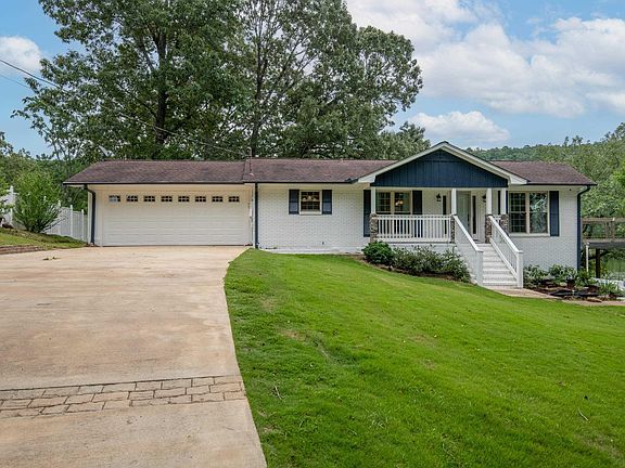 This home will be perfect for those who love to fish or just sitting on their deck watching the fish jump in the lake. Sitting at the end of the street with very little traffic you will find a painted white brick home sitting on a large manicured yard that has approximately 330 ft of waterfront. You can see the water from most windows in the house. This home is easy living with a 2-car garage for main level entry. The very large kitchen will make entertaining a breeze with a brand new stove, tile floors & backsplash w/granite countertops. The sunlit family room is open to the kitchen and has a nice view of the lake that leads to the newly installed deck. New flooring throughout the main level in 2018. Two BR's are on the main level & both of the beautiful main level BA's have been updated. Downstairs has a den that opens to a patio overlooking the lake. Also, included is a mudroom, 3rd BA, office/bonus room or 3rd BR plus additional storage is included. Septic cleaned 2021.