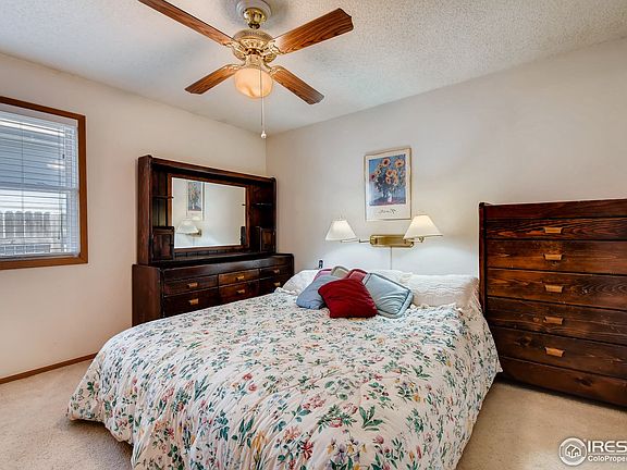 Great single-level ranch in popular Stoney Ridge. Light/bright floor plan. Pleasant eat-in kitchen with lovely light wood cabinetry-full face, beadboard doors, many roll-outs, lazy Susan. Kitchen island, Corian counters w/deep, integrated sink, vinyl 'wood plank' floor. Split bedrm plan, ample-size Master bedrm w/walk-in closet. Champion Windows, vinyl siding, brick facing, gutters. Wood deck, great storage shed (8x12). Nice curb appeal. Location offers quick/easy access to OT Longmont.