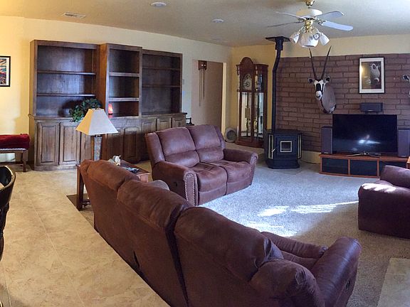 Incredible, custom built property has so much to offer in an isolated neighborhood outside the city limits in Carlsbad. This stunning, adobe home sits on .80 acres of irrigated St. Augestine grass in La Huerta. This is the perfect home for entertaining both inside and outside. It offers a mature 20' Madrone Tree, (2) 30' Afghan Pines, (3) 25' Ponderosa Pines, and a Weeping Mulberry Tree which adorn the front yard. This beautiful 2100 Sq/ft, 3 bedroom/2 bath/2 car attached garage home features a spacious kitchen with plenty of storage, a 16' x 15' office/utility room with large sink, living room with vaulted ceiling, and a family room with exposed authentic adobe brick walls and cast-iron pellet stove for cooler winter evenings. The Large kitchen offers granite countertops, a double oven with convection, microwave/convection oven with vent combo, top of the line Bosch dishwasher, and glass cooktop. The beautiful, large master bedroom has isolated bathroom and walk-in closet. The guest bedrooms include huge vaulted ceilings with accessable lofts which are accented with the large passive solar windows. Outdoor living at its best with a large, 24' x 24' back patio, mature fruit trees, pecan trees, pistachio trees; as well as, deck surrounding a 24' garden area. Electric wiring and concrete slab for a hot tub. Huge, insulated 50' x 30' metal shop (heated & cooled) with 2 large overhead doors; as well as, an additional 12' x 30' workshop. This home has something for everyone. It won't last long priced at $475,000. Call Duane at 575-361-9566 to schedule a private showing.