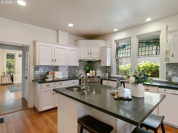 4 FULL floors will astound you: giant beveled glass rarely seen in such size and splendor, owners suite w/full fireplace, gorgeous social circle floor plan on main, acres of hardwoods, 3rd-floor suite or student lair....Don't overlook the massive XTL bsmnt built to house canning, workshops & storage. All ensconced in one of PDX's loveliest neighborhoods w/ extra unique neighbors, retirement Nuns Apt complex! A rare historical home 1st time on mkt in qtr century. Come see a true Home Love Story.