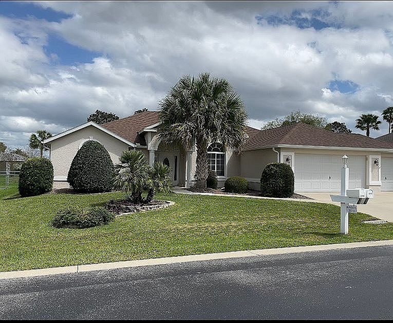 2BD/2BA house. The front door invites you into a large living room with vaulted ceilings and a wonderful view of the dining room and very spacious Florida room. The kitchen has brand new stainless LG appliances and raised panel cabinets. There is an island to work and sit at and a large pantry. Master bedroom has room for a king sized bed, night stands and other furniture. There are 2 walk-in closets. The master bath has a walk in shower, soaking tub, double sink vanity with lots of extra storage. Large family room/possible 3rd bedroom with tray ceiling. The extra large lanai/ Florida room has many large windows with vertical blinds. Outside there is a beautiful, large patio area. New roof in 2020. Great location: In beautiful Ocala Palms. Active 55+, 24/7 manned, gated community with golf course, on site restaurant, indoor and outdoor pools, hot tub, exercise room, library, large activities center, and tennis courts. Publix, Walgreens, McDonalds, a variety of banks, fast food and various restaurants nearby.