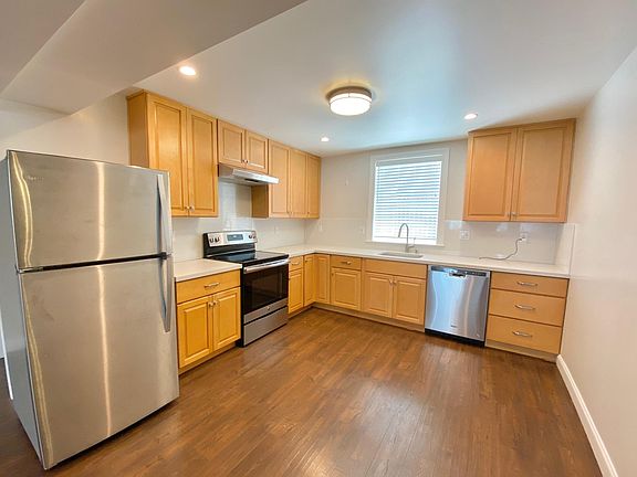 Newly renovated unit in a duplex on a tree-line "Slow street". This lower level unit has 4 bedrooms and 3 full bathroom. Roughly 1600 square feet of living space. It features open floor plan for living room and kitchen. Large open dining room can serve as a large home office. One master bedroom with private bath and walk-in closet. Other features includes: Stainless steel appliances, washer/dryer hookup, large closets for storage, and lots of windows for natural light. In addition, the location of this unit is within walking distance to dining, transportation and shopping on Park Street. Renter responsible for all utilities. No off-street parking.