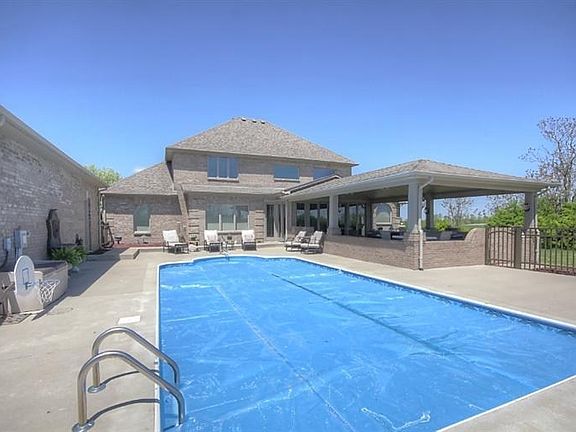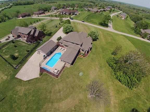 Luxury Redefined... custom built (John Devere), 1 owner home, 1 acre lot, all hardwood & tiled floors(no carpet), ample dentil molding, 17' ceilings in formal foyer & great room, GR has a gas logs fireplace, formal dining room w/tray ceilings & crown molding, kitchen-granite counter tops, trash compactor, pantry, kitchen bar & breakfast room. Master ensuite w/double tray ceilings, hardwood, 2 closets, 2 sink areas & makeup vanity space, tiled walk in shower, sep. water closet, jetted tub. 2nd BR on main level has private full bathroom. Upstairs-full BA w/2 sinks, bonus/rec room w/sky light, & walk in floored attic storage. Outdoor kitchen w/Jenn Air grill w/6 burners, sink & mini refrige. In ground custom pool-HEATED & salt water (very little $ to maintain yearly) w/custom lighting w/12 color settings & commercial grade fencing. Yearly averages: KU elec. $157/mo., Columbia Gas $95/mo. Detached garage 32' deep x 24'. Attached garage has ceramic tiled floors for overflow entertaining.