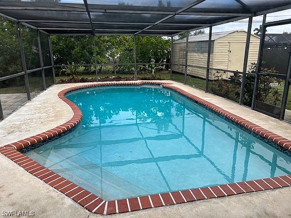 Sitting in the middle of a large 80x120 lot this home offers 2 bedroom, 2 full baths with a in-ground concrete screened pool, patio and a large storage shed in rear of property. The kitchen has newer cabinetry, with granite counter tops. New Metal Roof in 2018. There is a separate dinette area off the kitchen and an inside laundry room. House did not flood in Ian. COZY AND CLEAN - A MUST SEE!! Listing is pending, backup offers will be accepted.