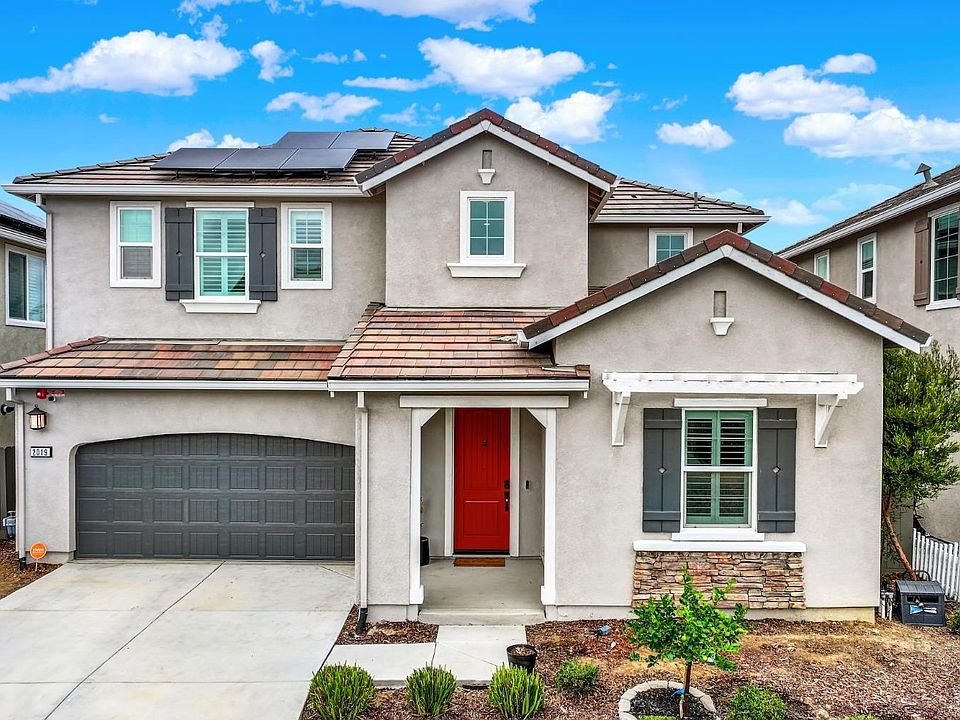 Step into modern luxury with this beautifully designed 4-bedroom home, perfectly blending style, comfort, and modern convenience. A main-level bedroom with a full walk-in shower offers flexibility for guests avoiding stairs or multigenerational living, while the open-concept design fills every space with natural light. The gourmet kitchen is a showpiece with its sleek waterfall island, pendant lights, expansive walk-in pantry, and upgraded appliancesideal for entertaining or everyday life. Upstairs, you'll find three additional bedrooms and two full bathrooms. The primary suite is a true retreat, featuring a soaking tub, a spacious walk-in closet, and elegant finishes. Shutters throughout add both style and functionality. Set in a premium court location, this home offers the added privacy of a large backyard with no rear neighbors, backing to a scenic open park for peaceful views and recreation. The backyard is ready for you to put your personal stamp on it and already includes a large concrete pad and a covered patioperfect for outdoor dining or relaxing. Families will also appreciate the proximity to the highly rated Kairos school. Bright, airy, and thoughtfully upgraded, this home is move-in ready and sure to impress at every turn. No HOA in Brighton Landing.