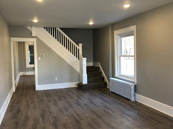 Completely remodeled semi-detached home with off street parking and large side yard. The property has all new kitchen cabinets, appliances, new bathroom, new flooring, new paint & new rear deck. Lease is one year after which it goes month to month. Rent includes public water, sewer & trash. Tenant pays for natural gas heat & electricity.