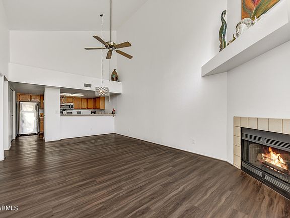 Here it is 1Story Townhouse, 3 Bedrooms, 2 baths. Awesome vaulted ceiling, nice and bright. Kitchen bar, Great room with wood burning Fireplace. Storage area off private patio. Close to restaurants, close to101 and near Fashion Mall. Home has newer floors ,paint , Window treatments, throughout. New Stove, Dishwasher , Osmosis system, New Front Door, New toilet in hall bath. Buyer to check all facts and figures.