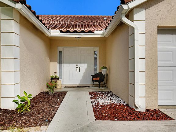 Move right in with this charming 3bd 2ba located on a cul-de-sac in Lake Point of Wellington. As you enter the double doors, just past the foyer, you will find a large open tiled great room over looking the backyard/patio. Upgraded stainless steel appliances, wine cooler, and a nice light and bright kitchen with white cabinetry. Bar top counter adds additional seating next to dining area. Spilt bedroom plan all with laminate wood flooring. Master bath has a separate shower and a separate tub. Updated second bathroom includes new vanity and granite countertop. As you step out the back door you have a very private backyard and patio. Great location in the heart of Wellington. Close to shops, fine dining, all equestrian events. Don't miss this excellent buying opportunity!