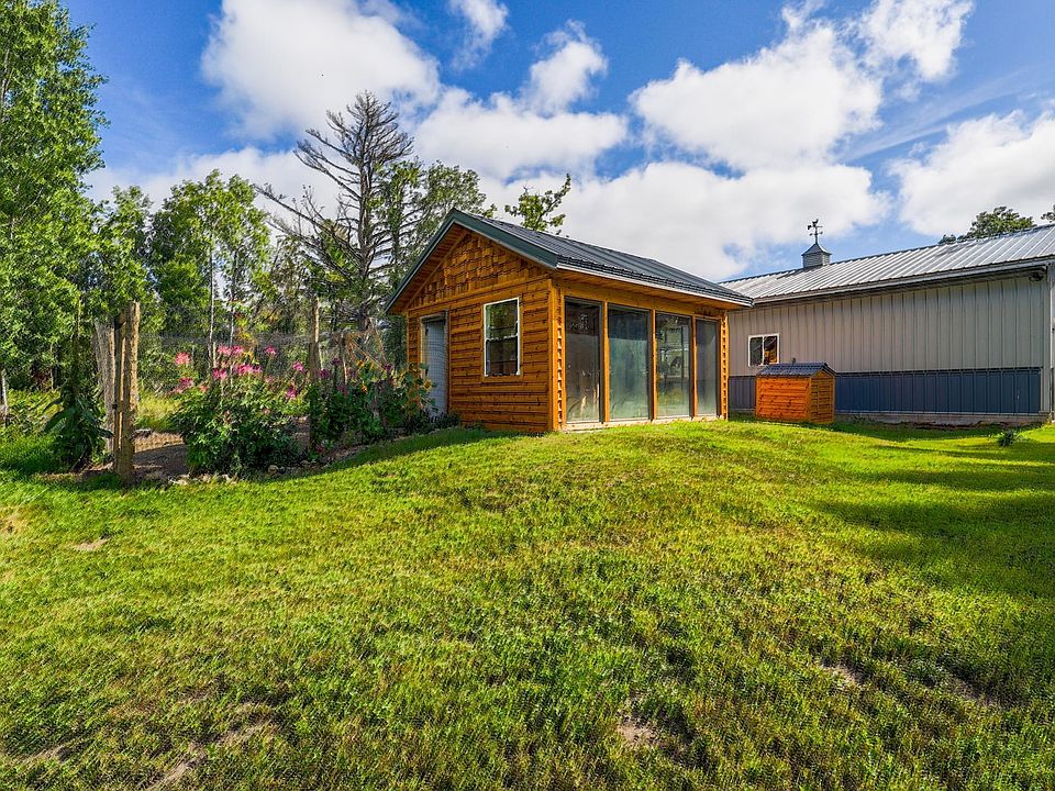 Parking and workspace are abundant. The attached heated 2-car garage provides everyday convenience, while the extra detached 2-car garage offers excellent space for your toys, hobbies, or equipment. A greenhouse and chicken coop near the front of the property add functional charm, and a large fenced garden area provides space for planting and outdoor projects. The yard offers both open and shaded areas with mature trees and a gentle slope.