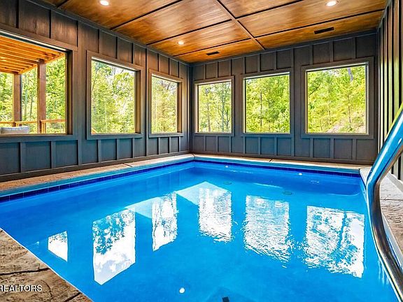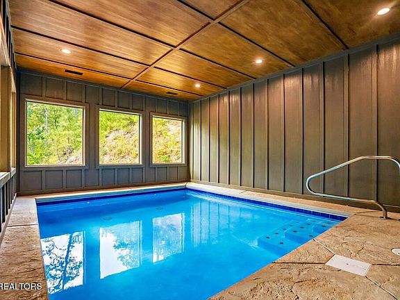 New luxury Pool Cabin! The unbeatable location is Just a short drive to Pigeon Forge, Gatlinburg and Sevierville. Close to restaurants, shopping and attractions. No expense was spared on this stunning 3 bedroom 2800 sq ft show stopper. If you are looking for luxury but also a family friendly environment then look no more! You will be blown away by the craftsmanship of this cabin spanning the beautiful exterior all the way down to every detail on the interior. Walking into the first floor you will notice a tastefully decorated living room , kitchen and dining. Every room offers a modern-rustic touch with a cozy atmosphere. The kitchen looks as though it belongs in a magazine, offering black stainless steel appliances and a gorgeous quartz waterfall island. The dining area offers plenty of space to have a nice dinner with the entire family. On the first floor you will also notice a Large size bedroom and half bath. Everyone in the family or guest will be excited about having their very own private pool inside the cabin on the first level. The fun doesn't stop there! On the second level you will find a bonus area with lots of arcade games setup for kids of all ages. An additional bonus room was added to use as a bunk room-family room. The second floor also offers two large bedrooms. The master bedroom will take your breath when you see the wow factor of the large shower and soaking tub combo en-suite. Also every level of the cabin offers outdoor deck space for spending time enjoying the outdoors and wildlife. Upstairs deck has a 4 person hot tub and seating for a day of relaxing after swimming in the pool or shopping. The downstairs deck has seating and a romantic outdoor tabletop fireplace. Another small deck off the dining area has a grill and access to an outdoor fire pit area. This cabin offers plenty of space for the entire family. There are too many details to list! This one is a must see!