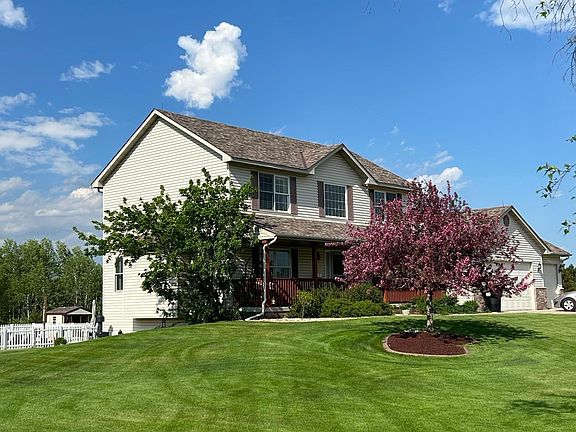 Welcome home to this 1 owner custom 2 story situated on 2.45 Acres. Sit on your covered front porch and hear the sounds of nature as well as the beautiful sun rise and sunsets while looking over your well manicured yard with custom concrete edging and in-ground sprinklers. Beautiful Primary bedroom with vaulted ceilings and walk in closet. Primary bath with jacuzzi tub and shower.This home is sure to impress as it has been so well taken care of. Enjoy working on your projects all year in the heated and insulated attached garage. Store your toys 26x32 Pole Shed. Step out to the back deck off the Kitchen and Dining area only to find yourself looking at a beautiful in-ground swimming pool sure to offer memories to last a life time. This home has many recent upgrades including new carpet on the upper levels. New flat ceiling that was custom done throughout the home.