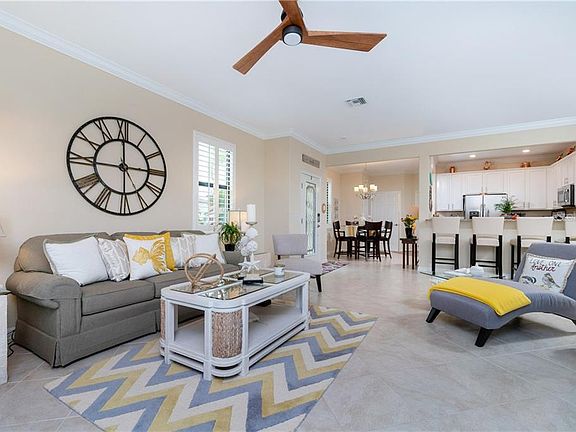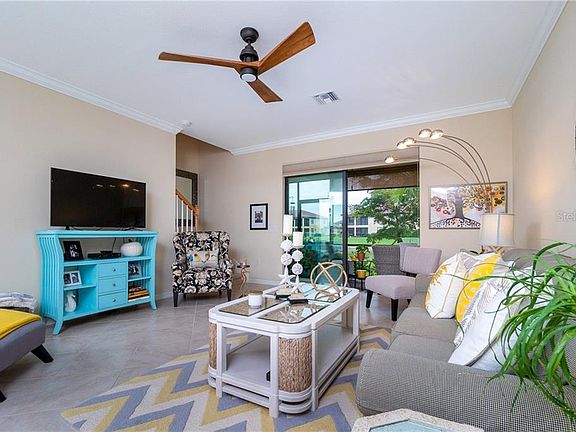 Timing Is Everything!! The Ava model is rarely available & builder is over 6 months out for an end unit townhome. Now is your opportunity to own this like-new, 3 bedroom, 2½ bath home. The additional windows, side glass door & sliding glass doors allow natural light to spill in the oversized living area. Open concept great room leads your eye directly to the lanai with serene lake view. An entertainer's dream, the kitchen boasts shaker style white cabinets, endless granite countertops, huge breakfast bar & stainless steel appliances. Tile on diagonal & Plantation shutters throughout 1st floor add yet another touch of class. ½ bath conveniently located on main floor for your guests. All 3 bedrooms located on the 2nd floor. Oversized master suite includes large bedroom, 2 walk in closets, double vanity sink & walk-in shower. Washer & dryer also perfectly placed on the 2nd floor. Tiled lanai is a great place to watch nature as you sip your morning coffee or watch sunset with evening cocktails. Why wait to build when you can have all the fine finishes right now and save on closing costs? Gran Paradiso in the West Villages is resort-style living- private, gated, golf cart friendly & maintenance-free. Enjoy huge zero entry swimming pool, large deck area with cabanas, phenomenal fitness center, and so much more. RCLCO names West Villages #3 in 2019 Top Selling Master Planned Communities. West Villages is home of the Atlanta Braves spring training stadium with year round activities for the community.