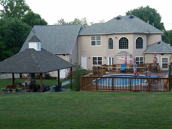 DON'T MISS THIS ONE! Custom-built 4 Bedroom, 3.5 bathroom, 3-car garage home on .92 acres in sought-after Broad Run Farms neighborhood. Private neighborhood Broad Run Creek and Potomac River access, and NO HOA!! Spacious main level with master suite, walk-in roman double shower, soaking tub, separate double sinks. Master bedroom has re-claimed hardwood flooring. Main level also has office separated from the living room/foyer by glass French doors. Kitchen has double oven, separate cooktop, neutral maple cabinets and granite countertops with plenty of prep space. Custom pantry cabinet with sliding drawers. Two story living room with fireplace and ceiling fan. Dual zone electric/propane heating and dual zone A/C. Upper level has three bedrooms, two with Jack-and Jill bathroom, and third bedroom with attached bath. Large bonus room also on the upper level with custom-made decorative beams. Basement is unfinished for workshop area, lots of built-in shelving for storage. Trex front porch, backyard pool, decking, outdoor covered pavilion with ceiling fans, lighting and stone walls/patio, all great for outdoor entertaining! Separate garden storage shed. Three car garage has 13 foot ceilings, and is lift and heat ready. Home is on public sewer and private well.