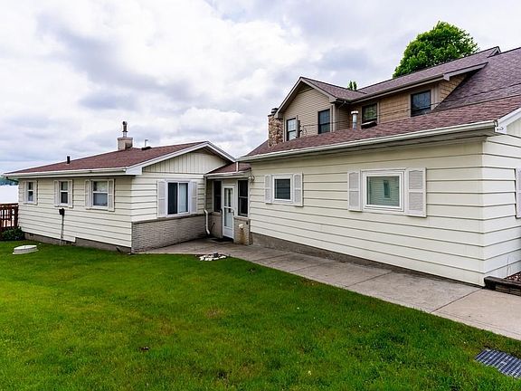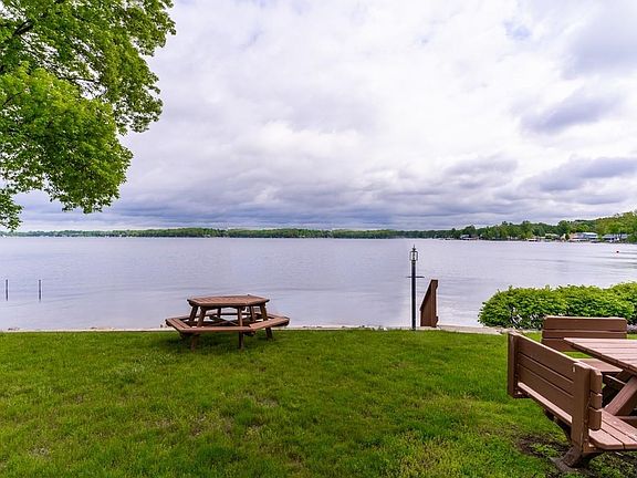 Contingent. Accepting Back Up Offers. Gorgeous views of Lake George with 80' of lakefront and a great beach. Level lot with a ranch style home plus a back lot with a 26x40 pole barn/garage and plenty of parking. The open concept living room and kitchen are lakeside. The eat-in kitchen has an abundance of storage and a slider to a lakeside deck. All kitchen appliances are included. The living room leads to a lakeside 4 season room. There are 3 bedrooms, a full bathroom and a nice sized laundry room. The laundry room has a sink, washer, dryer and an extra refrigerator that are all included. Most windows were replaced with Anderson Thermal. There are 2 furnaces, a central air unit and one room AC unit to keep things cozy and comfortable. Stone seawall with concrete steps to the lake. All appliances and pier is included.
