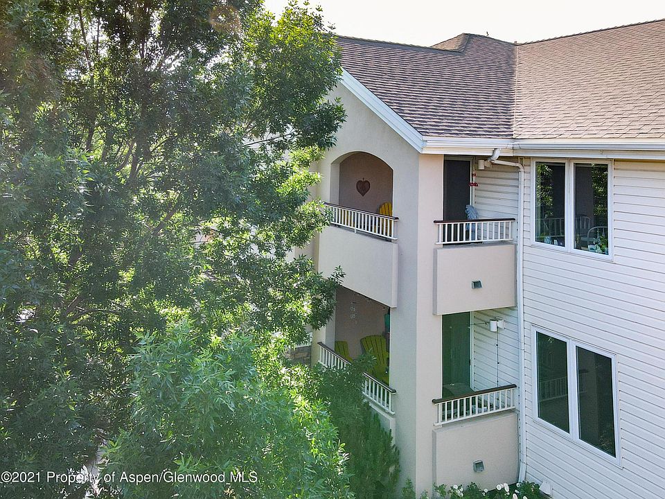 Attractive stone and stucco building consisting of 12 condominium units. A keyless entry door with intercom provides secure access to an airlock common entry hall and stairs. Mature trees provide shade for the covered south deck. Enjoy the view of Mt. Sopris from this top-floor unit! 2021-06-18