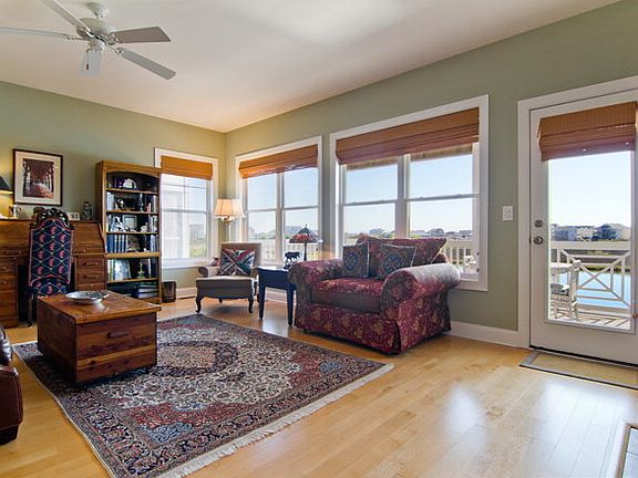 Like new, beautiful waterfront 4 bed 4 bath townhome located in The Palms at Boca Bay on Topsail Island. Magnificent water views fill the windows from the massive great room complete with fireplace. Spacious kitchen provides fabulous cabinet space, as well as Corian countertops with refrigerator included. Huge master suite complete with sitting area, walk-in closet, master bath and water front morning porch. 3 of the 4 bedrooms have their own private bath. Yard has been beautifully landscaped with Palms and Live Oaks. Gorgeous coastal architecture and styling. Elevator shaft in place serves as spacious storage with shelving on every level. Vacant lot across the street is owned by neighbor who purchased to preserve the sound side views of the sunsets. CHEAPEST FEDERAL FLOOD INSURANCE ON THE