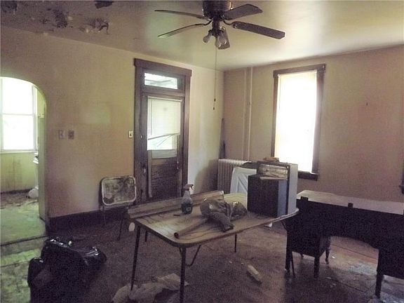 Duplex with hardwoods and nice hardwood closets. Clawfoot tub on each side. Large attics and basements. Each side has a back porch. Fenced in yard encompasses backyards as one. No repairs will be made by seller.