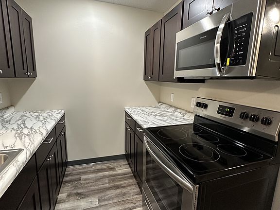 Modern one bedroom, one bathroom apartment. Stainless steel appliances, luxury vinyl plank flooring and paddle fans throughout. Fresh air circulating into your own apartment with air-to-air exchange technology. Fiber optic high-speed internet (100 mbps), water, sewer, off-street parking, and sanitation removal included in rent. Tenant pays electricity. No garage or balcony included in one bedroom apartment. Spacious, modern 17 unit apartment complex tucked inside a quiet, residential community for people 50+. Mandatory background and credit check done prior to approval with $50.00 non-refundable application fee. Crime-free, drug-free, smoke-free. No exceptions.