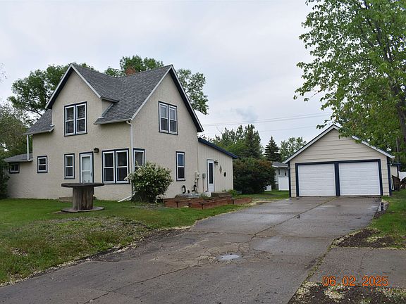 Welcome to this charming, move-in ready home, perfectly situated on a spacious corner lot. As you step inside, you’re greeted by a bright and inviting living room featuring a bay window and a cozy gas fireplace—ideal for relaxing or entertaining. The open kitchen is complete with a peninsula that overlooks the living space. The main floor also boasts a full bathroom, a large laundry room, and a generously sized bedroom. Upstairs, you'll find two additional cozy bedrooms, one of which includes a convenient half bath. Step outside to enjoy the large patio—perfect for evening campfires and outdoor gatherings. The expansive, fenced backyard offers plenty of space for relaxation and recreation. A bonus is its maintenance free! Additional features include a detached two-stall garage with a workshop area and a separate shed, providing ample storage space for all your needs.